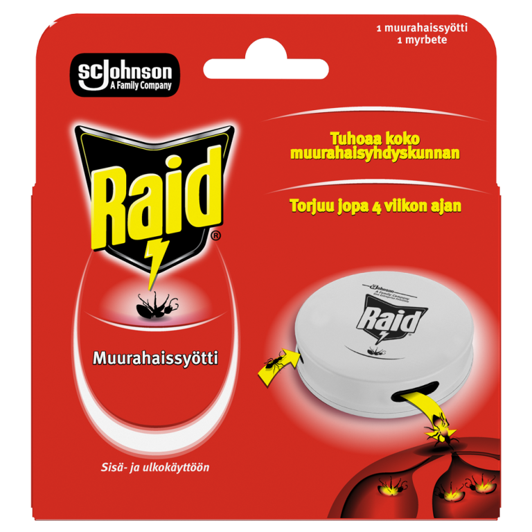 Valitse hyönteiskarkote hyönteistyypin mukaan. Suomessa luotetaan Raidiin; noin 70 % maassamme myytävistä Raid-tuotteista on myös valmistettu täällä. Tunnistat kyseiset tuotteet sinivalkoisesta Avainlippu-merkistä.